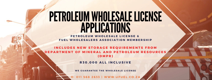 In terms of the Petroleum Products Act, (Act 120 of 1977) as amended in 2003, and which is administered by the Department of Energy (DOE), no person or business entity is allowed to wholesale prescribed petroleum products unless that person/business has a valid wholesale licence. The Act further states that no person may operate as a wholesaler (which means that you may not sell any form of petroleum product) unless that person or business entity has a valid wholesale licence. Wholesale licences may be applied for with storage facilities or without storage facilities.